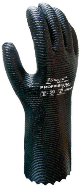 Luva de segurança REF. 34 NPTCLuva de segurança confeccionada em tecido de algodão canelado (suedine) com revestimento de borracha nitrílica na palma e dorso, modelo clute.Características:Elevado grau de conforto durante sua utilização e ótima resistência a abrasão para manuseios de objetos oleosos.Formulação 100% Borracha nitrílica.C.A 28.538