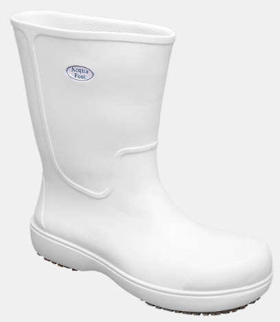 A Bota Acqua Foot tem um cabedal super leve confeccionado em EVA (Etil Vinil Acetato) atóxico. A Palmilha confeccionada em EVA (Etil Vinil Acetato) é removível, possui tecido na parte superior, podendo ser substituída a qualquer tempo. O solado antiderrapante é produzido com a tecnologia Super Grip, além de possuir borracha sintética especial (nitrílica) e borracha natural, altamente resistente ao escorregamento em pisos cerâmicos com solução SLC (detergente) e em pisos de aço com solução de glicerol.. A Bota Acqua Foot pode ser lavada com água, sabão, detergente, cloro ou produtos similares e descontaminação com água sanitária ou cloro. Este calçado está certificado pelo Ministério Trabalho e possui o CA – CERTIFICADO DE APROVAÇÃO nº 39.347, atendendo todas as exigências da Norma ISO 20.346/2015. PB – Calçado de Proteção(ABNT NBR ISO 20.346/2015) I – Calçado Isolante Elétrico(BS EN 50.321/2000)Classe 0Tensão de Ensaio (V) – 5.000 VoltsTensão Máxima para uso (V) – 1.000 Volts SRC – Solado Antiderrapante Produzido Tecnologia Super Grip, solado borracha Sintética Especial (nitrílica) + borracha natural, resistente ao escorregamento em piso cerâmico com solução SLC e piso de aço com solução de Glicerol. Contém AntimicrobianoContém substância Antimicrobiana junto à formulação composto EVAconfecção do Cabedal, diminuindo incidência de fungos e bactérias, maior durabilidade, bem como atenua o odor nos pés. Resistente Produtos Químico (D-K-O-P-R)(EN 13.832-2/2006)D – Dichloromethane – CAS-NR 75-09-2Diclorometano (Classe Hidrocarboneto Clorado)Ex. Solventes K – Sodium Hydroxide solu_on 30 % d=1,33 -CAS-NR 1310-73-2 Solução Hidróxido sódio(Classe Solução Alcalina)Ex. Soda Caustica O – Ammonia Solu_on (25 2) % – CAS-NR 1336-21-6Solução de Amônia (Classe Solução Alcalina)Ex: Amoníaco P – Hydrogen Peroxide (30 1) % – CAS-NR 124-43-6Peróxido de Hidrogênio (Classe Peróxido)Ex. Água Oxigenada concentrada R – Sediumm Hypochlorite (13 1) % (of ac_ve chloride)CAS-NR 7681-52-9 Hipoclorito (Classe Hipoclorito)Ex. Cloro em solução puro, água sanitária C I – Calçado Resistente ao isolamento do frio. Biqueira de Composite.Resistente a Óleo Combustível.Resistente a Sangue. Super Leve e Flexível (EVA) E – Calçado com absorçãoEnergia na área do salto. HigienizaçãoDesinfecção com Cloro.Impermeável Lavável.Não contém Látex no cabedal.Tamanho 34 ao 44.CA: 39347