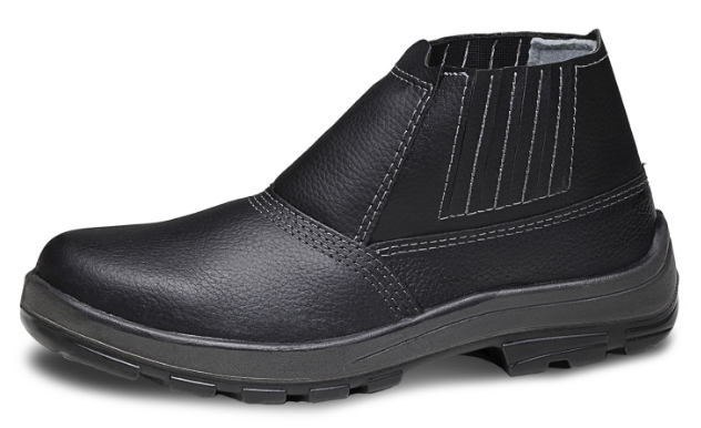 Botina em CouroCertificado de AprovaçãoC.A 48.413 (bico de PVC)C.A 28.511 (bico de aço)Descrição:Tipo de Couro do Cabedal:Couro lixado curtido ao cromo estampa Arizona. Tipo da Espuma e material do Dorso:Espuma PU 10.Courvin sintético preto. Tipo de forração:Forração em TNT. Tipos de Linhas:Costuras Simples e duplas Fechamento do Cano:Sistema de fechamento de calce rápido através de elásticos, recoberto em courvin sintético. Biqueira:Biqueira PlásticaBiqueira Aço Palmilha de Montagem / Conforto:Palmilha de montagem em material reciclável montada pelo sistema strobel dublada com palmilha de conforto de EVA revestida em tecidos antibactéria e antifungo Solado:O solado é constituído de duas camadas de poliuretano (Pu) bidensidade, injetado diretamente ao cabedal, com densidade de 0,35g/cm³ na camada de conforto e 0,47g/cm³ na camada de abrasão.Solado com sistema antipronação, canais de escoamentos mais espaçados, desenho da planta rebaixado com sistema shock absorber para melhor mobilidade ao caminhar. Numeração:33 ao 46 Embalagem Individual:Saco Plástico.