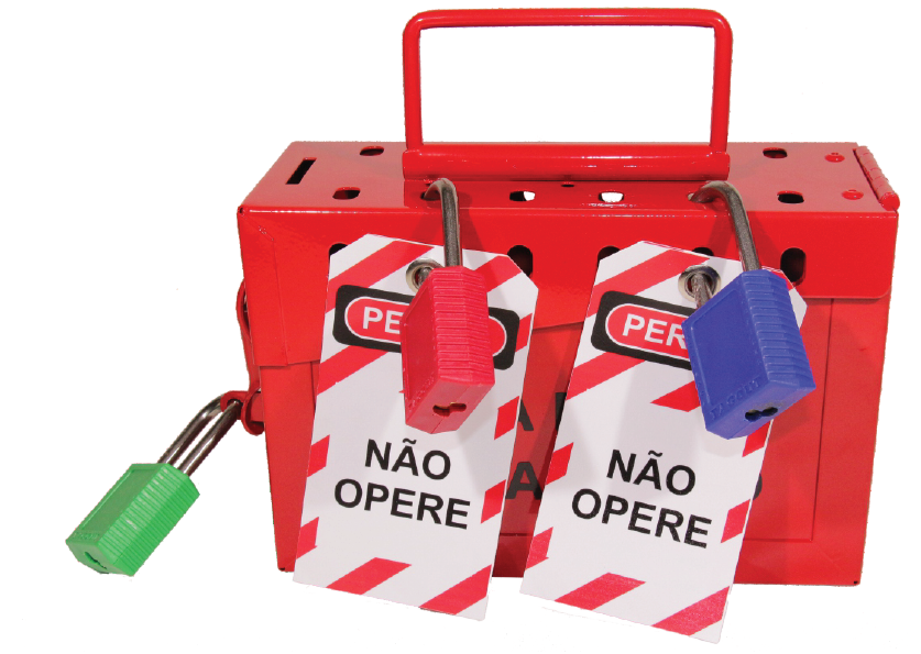 bloqueiem a caixa simultaneamente. Cada técnico da manutenção coloca seu