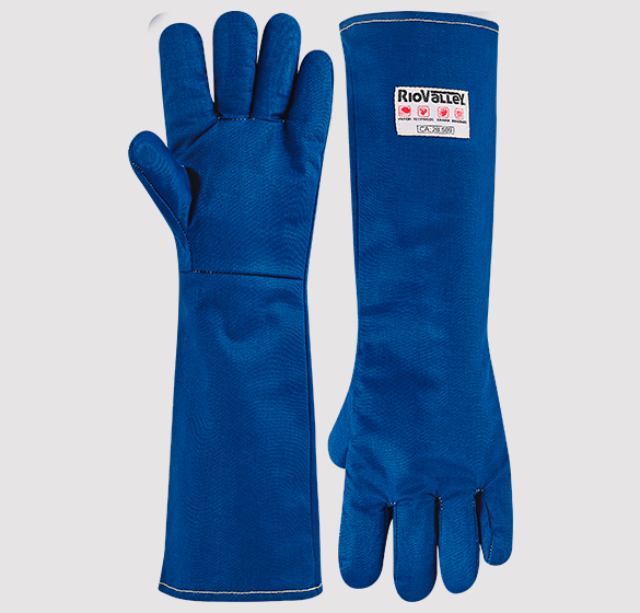 Luva de segurança confeccionada em tecido de algodão com tratamento antichamas, impermeabilizada com silicone. Forração destacável, sendo uma camada em tecido e uma em não-tecido, reforço entre o polegar e indicador, costurada com linha de para-aramida.Modelo 5 dedos.CA 28689