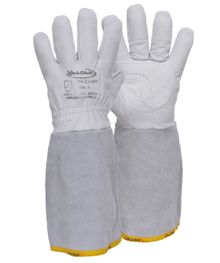 Descrição: Luva de segurança confeccionada em vaqueta integral, com reforço na palma, com punho confeccionado em raspa. Possui elástico de ajuste no dorso.Resultado dos ensaios de conformidade A luva de segurança referencia “Luva de vaqueta total ph em raspa” obteve resultado de níveis de desempenho 3324, onde:3 – Resistência à abrasão;3 – Resistência à corte por lâmina;2 – Resistência ao rasgamento;4 – Resistência à perfuração por punção;CA: 25387