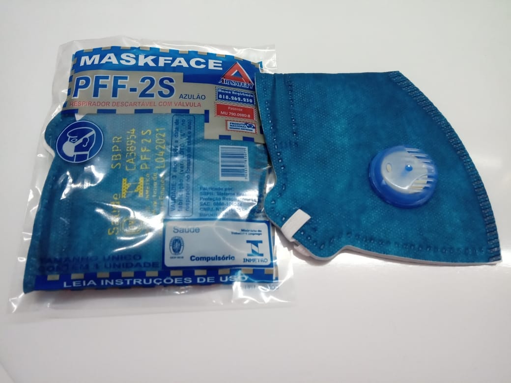 (listrada) e azul royal (azulão).Caracteristicas:• Classe: PFF2 Valvulado;• Tamanho: único. Aplicação:PROTEÇÃO DAS VIAS RESPIRATÓRIAS CONTRA POEIRAS, NÉVOAS E FUMOS (PFF2).C.A 38.954Cores:• Listrado• Azul