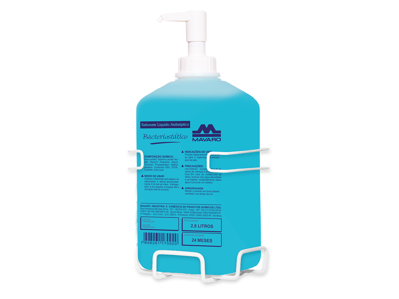 Especificação: Sabonete líquido antisséptico bacteriostático. Indicação: Indicado para assepsia da pele em hospitais, restaurantes, indústria alimentícia, ambulatórios médicos e dentários.Pode ser utilizado para higienização de EPI. Características Técnicas: – Contém ingrediente antimicrobial- Fórmula balanceada para não agredir a pele- Isento de aroma- Melhor custo-benefício: uma bombona de 5 litros rende 1.660 aplicações Embalagens:• Bombona 2,8L• Bombona 5L• Bombona 20L