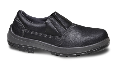 Sapato de Elástico com Bico de PVC Mod. USAFE Bracol Certificado de AprovaçãoC.A 28.513Descrição:Tipo de Couro do Cabedal:Couro curtido ao cromo estampa relax. Tipo de forração:Forração em não tecido. Tipos de Linhas:Costuras Simples e duplas. Fechamento do Cano:Sistema de fechamento de calce rápido através de elásticos, recoberto em courvim sintético preto. Biqueira:Biqueira Plástica. Palmilha de Montagem / Conforto:Palmilha de montagem em material reciclável montada pelo sistema strobel dublada com palmilha de conforto de EVA revestida em tecidos antibactéria e antifungos. Solado:O solado é constituído de duas camadas de poliuretano (Pu) bidensidade, injetado diretamente ao cabedal, com densidade de 0,35g/cm³ na camada de conforto e 0,47g/cm³ na camada de abrasão, tem sistema antipronação, canais de escoamentos mais espaçados, desenho da planta rebaixado com sistema shock absorber para melhor mobilidade ao caminhar. Numeração:33 ao 46 Embalagem Individual:Saco Plástico.Fornecedor:BSB – Equipamentos de Proteção Individual Ltda.
